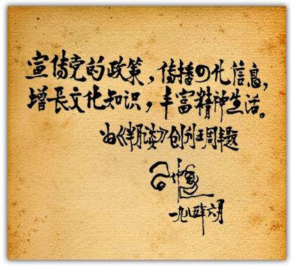 1985年6月 時任中共中央政治局委員、中央書記處書記習(xí)仲勛為半月談題詞:宣傳黨的政策,傳播四化信息,增長文化知識,豐富精神生活。