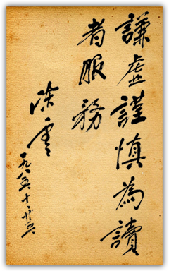 1985年10月 時任中共中央政治局常委、中紀委第一書記陳云為半月談題詞:謙虛謹慎為讀者服務(wù)
