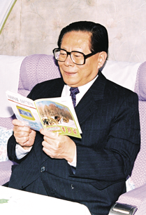1995年3月 時任中共中央總書記江澤民外地考察工作回京時在專機上閱讀《半月談》
