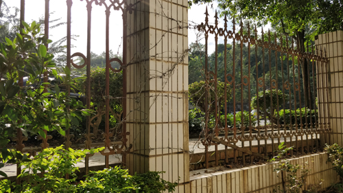 在陽(yáng)光綠城小區(qū),小區(qū)臨街的一面欄桿被人為剪斷,只是用鐵絲臨時(shí)纏繞