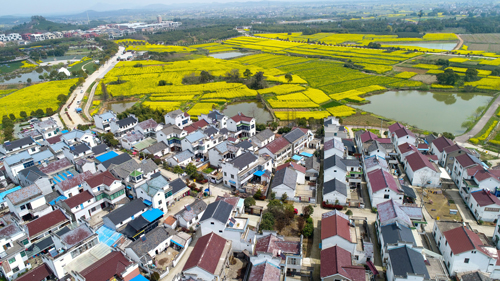 這是在江蘇省南京市高淳區(qū)椏溪國際慢城拍攝的油菜花田和民居 李響攝