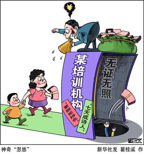 近年來(lái),功利教育觀大行其道,培訓(xùn)市場(chǎng)魚龍混雜,推波助瀾。不少家長(zhǎng)架不住廣告“忽悠”,老師“洗腦”,報(bào)班花費(fèi)成千上萬(wàn),可到頭來(lái)沒讓孩子練就“開掛”本領(lǐng),反被部分培訓(xùn)機(jī)構(gòu)坑錢、坑娃、坑智商。種種洗腦式營(yíng)銷,消費(fèi)家長(zhǎng)們的焦慮,加劇拔苗助長(zhǎng)的功利心,違背了教育育人為本的初心。
