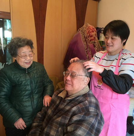 居家樂養(yǎng)老服務(wù)中心工作人員上門為老人服務(wù)