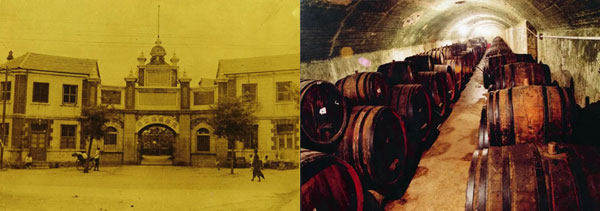 “張裕釀酒公司”老門頭(左)和地下酒窖(右)