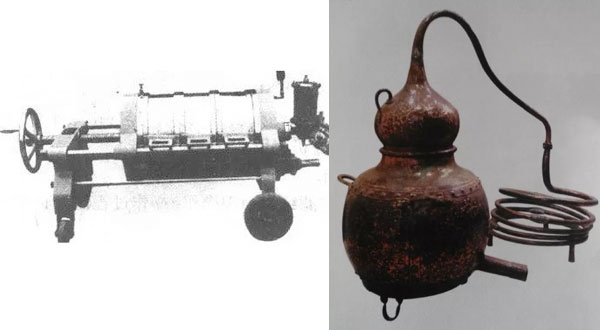 張裕酒文化博物館珍藏有一部銹跡斑斑的老蒸餾器,雖有殘缺,但器形特征非常鮮明,為標準的夏朗德壺式蒸餾器,紅銅材質(zhì),手工打造。