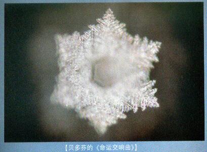 圖為水結(jié)晶在貝多芬交響曲音樂下呈現(xiàn)的外觀