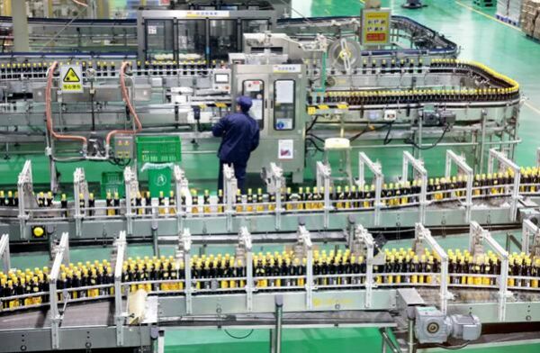 圖為山東魯花“自然鮮”醬香醬油生產(chǎn)線