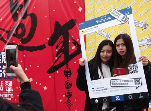 上海視覺藝術(shù)學(xué)院新媒體藝術(shù)專業(yè)的學(xué)生在現(xiàn)場(chǎng)為同學(xué)做直播秀 任瓏 攝