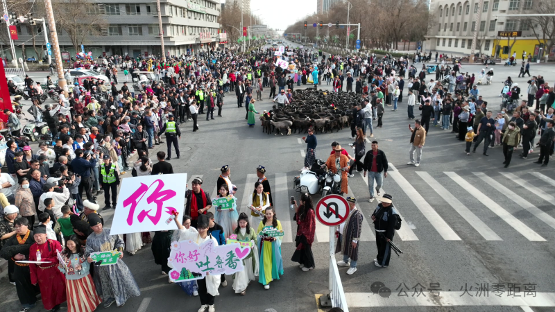 此次黑羊大巡游是高昌區(qū)深挖本土特色資源、推動(dòng)農(nóng)文商工旅深度融合的創(chuàng)新實(shí)踐?;顒?dòng)現(xiàn)場(chǎng),1314只經(jīng)過精心裝扮的吐魯番黑羊在馴養(yǎng)員的引導(dǎo)下,沿著高昌區(qū)主街道巡游,成為杏花季里一道獨(dú)特的風(fēng)景線。盛裝騎馬的騎士與扮成經(jīng)典卡通人物形象的演員一同加入,沿途居民游客紛紛駐足拍照、打卡互動(dòng),氛圍感十足。