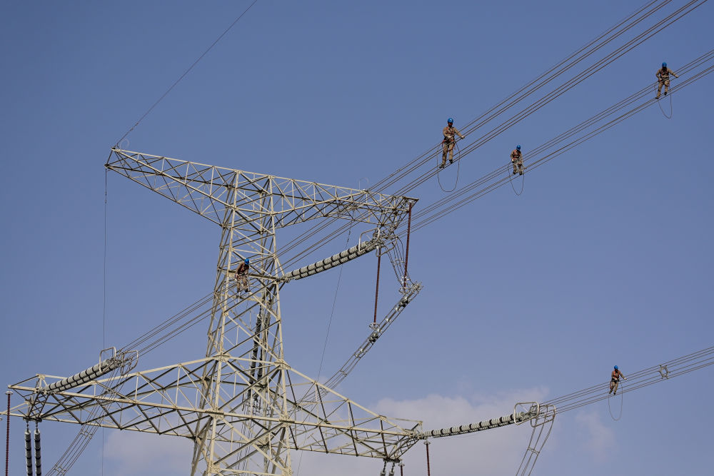 施工人員在且末-若羌750千伏線路開展走線消缺工作 丁磊 攝