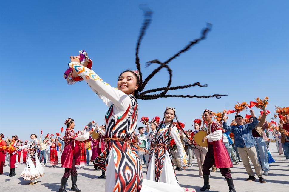 群眾載歌載舞,喜迎新疆維吾爾自治區(qū)成立70周年 畢曉洋 攝